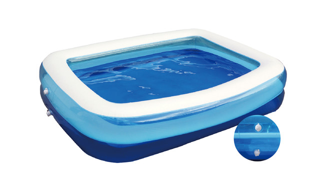 特徴:超ビッグサイズ!最長1.5mの大型ファミリープール。空気を注入するとフチ幅が23cmあるのでしっかり丈夫、2気室構造で安定性がばっちり。2段式バルブなので空気の注入と排出が簡単楽々。ガレージや駐車場、お庭にプールを置いて水遊びを楽しもう♪