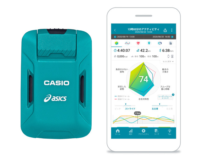 「Runmetrix」は、当社と株式会社アシックスが共同開発したランナー向けパーソナルコーチングサービスです。GPSや9軸センサーを搭載したモーションセンサー「CMT-S20R-AS」を腰に装着して走ることで、走行距離やペース、ピッチ、ストライドを記録するだけでなく、ランニングフォームのスコア化や、自分のフォームを可視化します。ランニングを手軽に数値化する新たなサービスとして、多くのランナーにご愛用いただいています。