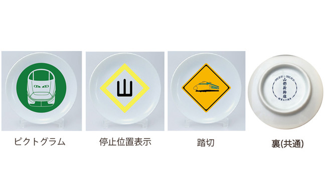 陶器製の豆皿です。表面には実際の停車位置マークやピクトグラムをデザインしました。皿立て付で、インテリアとしてもご使用いただけます。旅の記念品にもなる新しいコレクションアイテムです。