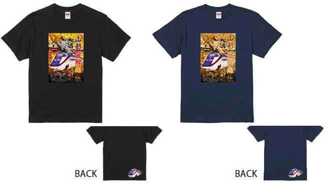 表面はオリジナルグッズデザインを全面にレイアウト。裏面は黒地に疾走する新幹線がスタイリッシュです。