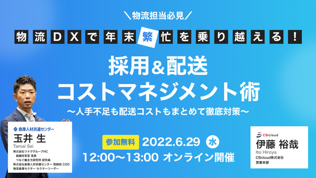 【物流担当必見】オンラインセミナー『物流DXで年末繁忙を乗り越える!採用&配送コストマネジメント術~人手不足も配送コストもまとめて徹底対策~』