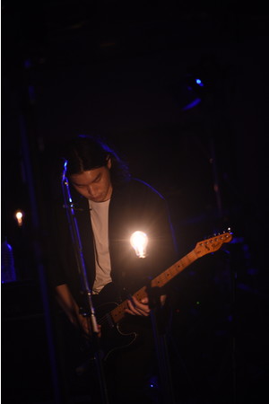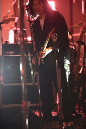 一転、青いライトに照らされてゆったりとしたテンポの「NEVERLAND」を切なく奏でると、メンバーが不穏なセッションを繰り広げる中、スタンドから外したマイクを手にした古舘が喋り出す。「今日は金曜日の夜です。銀座の地上ではきれいなお姉ちゃんとか裕福なおじさんとか、いろんな人がうろうろしていました。そんな中我々は地下にこもって4人で音を出しております。たぶん地上にはこの音は届かない。でも今日は一番大きい音を、ここ銀座で鳴らしたいと思います」。