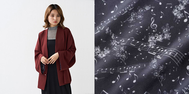 裏地の意匠には、趣味・特技に「作曲」を挙げる伊東が本コラボをイメージして自ら書き下ろした旋律を採用。この楽曲とともに、祖母が好きだった花だという「胡蝶蘭」を舞うようにあしらった優美なデザインは必見。