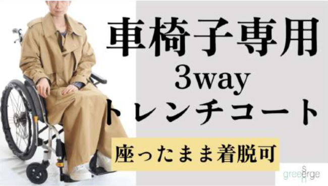 車椅子ユーザーの方とヒアリングを重ね、「こんな服が着てみたい」「こんな服があったらいいな」ロング丈コートは着脱しにくいから着たいけど購入しないかな」等のやり取りを何度も重ねて完成しました。上側と下側に分かれる仕様になっているため座りながら簡単に着脱が可能。ジャケットのみ、ブランケットのみで使用ができる。物が落ちにくいこだわりのポケット。という特徴があります。