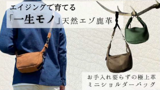 狩猟から製品完成まで全て日本で行う。レザーのカシミヤと言われている鹿革を熟練職人の手で一生モノに仕上げました。エゾ鹿の革は革なのに水に強い、軽い、柔らかく強靭という特徴があります。普段使いだけではなくアウトドアキャンプにも最適です。またショルダーベルトを外してリュックに取り付けられる、8つの収納ポケットで高い収納性などの特徴もあります。