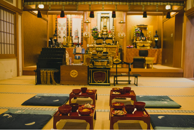僧侶特有の修行の一環としての食事である精進料理は、動物性食材や匂いの強い食材は取らないというばかりでなく、料理の準備や調理、食べること、後片付けなど、食行動を通して自己を見つめるものです。食に対して、様々な見地から追求されているお坊さんと一緒に季節のおやつを作ります。出来立てのおやつは、香り良いお茶と一緒にお召し上がりいただきます。