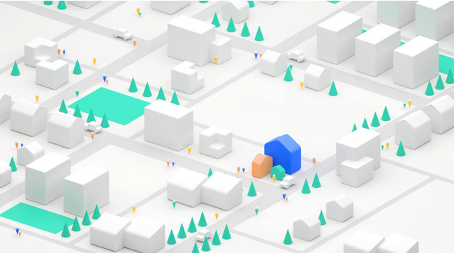 また、黄金比に基づく「おうち」を3Dで表現したアプリアイコン、コーポレートカラーの青と緑をベースにピンクを差し色に配色したカラー、さまざまな暮らしのサービスと重ね合わせた異なるサイズの家をビジュアル化するなど、統一感を重視。