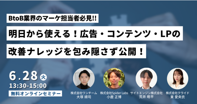 【6月28日(火)開催・参加無料】BtoB業界のマーケ担当者必見!!翌日から使える、広告・コンテンツ・LPの改善ナレッジに関する4社合同ウェビナー開催決定!