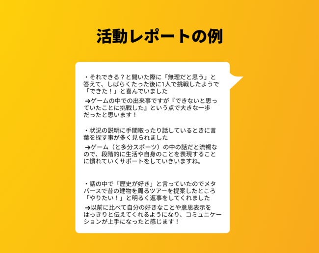 ●お子さんの変化や得意が分かる活動レポート
