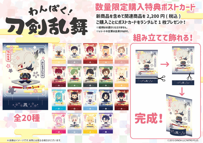 『わんぱく!刀剣乱舞』の新商品を含む関連商品をご購入の方に、組み立てて飾れるポストカードをプレゼント!