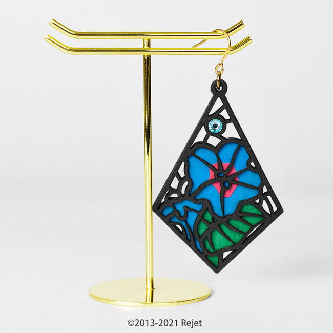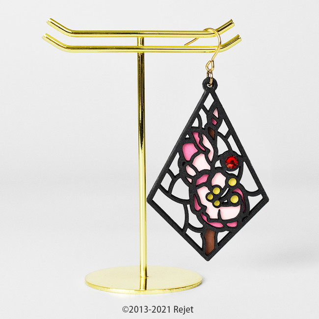 そんな体にも環境にも優しい紙ピアスに、九十九丸は彼岸花、螢は山吹、黒羽実彰は菖蒲、縁は梅、鷺原左京は紫陽花、鈴懸は金盞花とそれぞれキャラクターたちをイメージした花がデザインされています。
