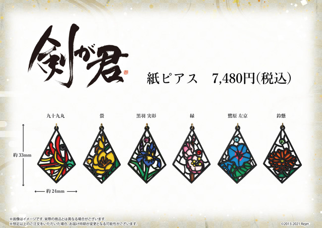 大人気ゲーム『剣が君』から伝統工芸『紙ピアス』が登場!九十九丸、螢、黒羽実彰、縁、鷺原左京、鈴懸…侍たちがイメージの花をあしらったデザインに