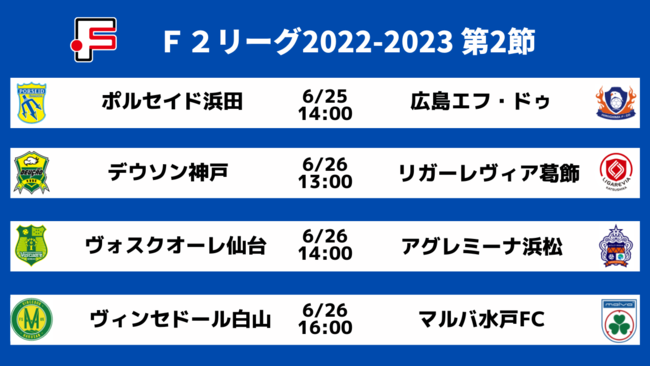 本日25日(土)、明日26日(日)に開催するFリーグ2022-2023 ディビジョン2 第2節の4試合を以下の通り、ELEVENにてライブ配信いたします!全試合を無料でご視聴いただけますので、ELEVENのアプリをダウンロードいただき、ぜひご視聴ください!