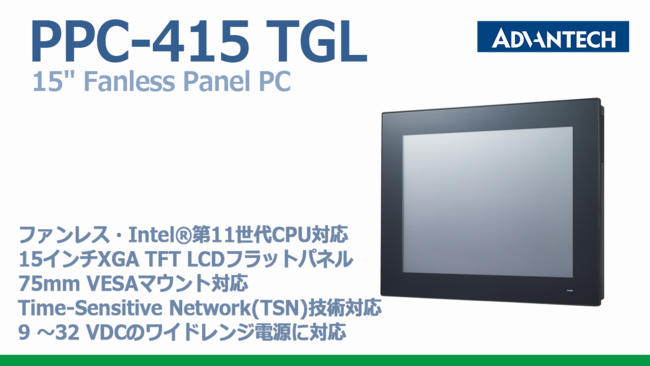 産業用コンピュータの分野において世界トップシェアのアドバンテック株式会社(Advantech Co., Ltd. 本社:台湾台北市/日本法人:東京都台東区、以下 アドバンテック)は、産業用向けファンレスタッチパネルPC「 PPCシリーズ」の最新モデルとして、PPC-415 TGLを発売しました。PPC-415 TGLは、インテル(R) 第11世代CPU搭載で高性能CPUを必要とするアプリケーション向けに設計され、マルチタッチスクリーン、豊富なI/O、アルミニウム合金製フロントベゼルなどの特徴を持ち合わせています。
