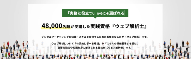 「アクセス解析を軸としたウェブ解析スキルを身につけ、データを読み取り、正しい判断ができるスキル」の会得を目標とした資格です。