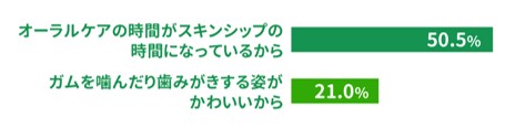 その他、「ガムを噛んでいる姿や、歯みがきしている姿が可愛いから」が21.0%と、愛犬とのふれあいを楽しむことがモチベーションの維持に大切だという結果になりました。