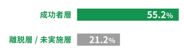 頑張るからには完璧でありたい…。大好きなワンちゃんのためにそう意気込む飼い主さんも多いのでは?しかし、今回の調査結果では、成功者層ほど継続するために必要だと感じることは「完璧でなくていい」という、驚くべき結果が55.2%で第1位に。一方で、離脱層や未実施層の飼い主さんでは、「完璧でなくていい」と答えた方は、21.2%と留まりました。