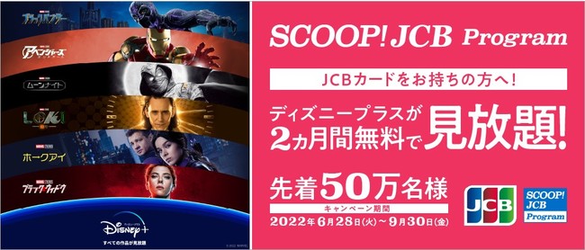 株式会社ジェーシービー (本社:東京都港区、代表取締役会長兼執行役員社長:浜川 一郎、以下JCB)は、2022年6月28日(火)から9月30日(金)まで、「【先着50万名様】ディズニープラス2ヵ月無料視聴キャンペーン」を実施します。
