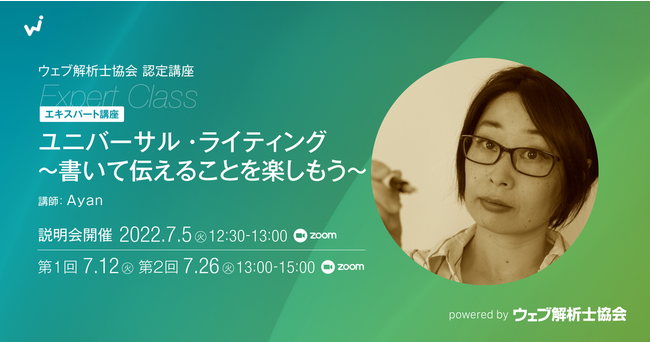 2022/7/12,7/26(火)13:00-15:00 【エキスパート講座】ユニバーサル・ライティング ~書いて伝えることを楽しもう~