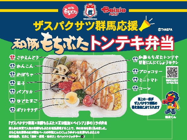 ベイシアは2004年12月より、ザスパ草津(当時の名称)のJFLリーグからJ2への昇格を支援し、現在はザスパクサツ群馬とオフィシャルユニフォームパートナー契約を締結。メインスポンサーとして応援しています。これまで、ザスパクサツ群馬の選手・スタッフと県民・サポーターの皆様の接点を増やすため、シーズン直前の決起集会、スペシャルマッチなどのイベントを実施。また、主要店舗でオフィシャルショップを展開し、物販だけでなく、県民・サポーターに向けた情報発信機能を果たしています。2021年にはザスパクサツ群馬、グローバルピッグファームとコラボし、「ザスパクサツ群馬応援 和豚もちぶたトンテキ弁当」を販売。多くのお客様にご好評いただき、売上の一部を強化基金としてザスパクサツ群馬へ贈呈いたしました。今後も様々な側面からザスパクサツ群馬の活動を後押しすることで、地域の活性化に取り組んでいます。