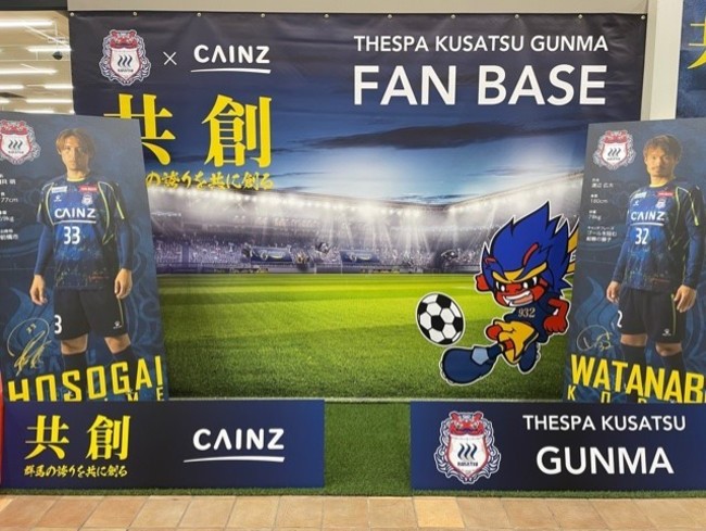 群馬県内 27 のカインズ店舗とカインズ本部では、2 月 1 日から 2022 年新シーズンの事前プロモーションとして、店頭でののぼり、横断幕、選手ボードの掲出や、ザスパオリジナルグッズの販売を行っています。またカインズスーパーセンタ― 前橋吉岡店では、常設している FANBASE を 4 月 22 日(金)にリニューアルし、新たにフォトスポットを設置いたしました。店舗に来店されるお客様にも気軽にザスパの魅力に触れていただける取り組みを、これからも進めていきます。