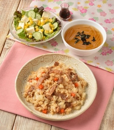 豚肉と出汁、野菜を一緒に炊き込む、沖縄の炊き込みご飯「ジューシー」。今回のレシピでは、ヨシケイ特有の小袋調味料を使用するので、簡単に味が決まります。