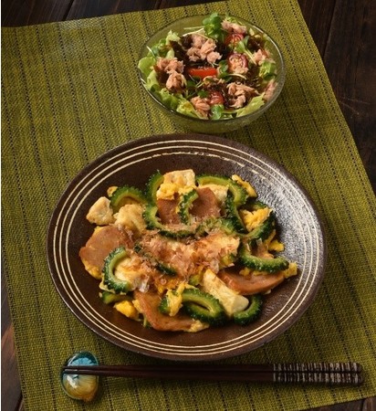沖縄の家庭料理の定番、ゴーヤチャンプルー。沖縄県産豚肉、鶏肉を使用したランチョンミート「わしたポーク」を使って、沖縄の味をお楽しみください。