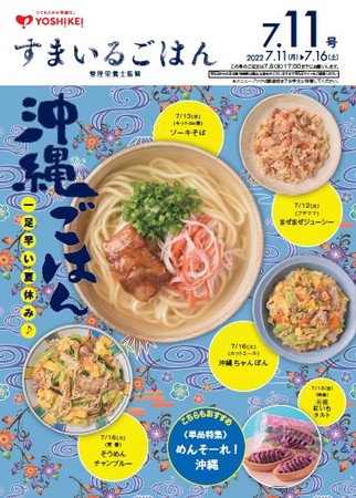 つくる人から笑顔に。をテーマに全国でミールキット宅配サービスを提供するヨシケイグループ(本部所在地:静岡県静岡市 / 代表取締役:井野口 雄一)は、7月11日号のメニューブック『すまいるごはん』で「沖縄ごはん ひと足早い夏休み♪」と題して、沖縄の地元料理メニュー計6種類をお届けします。ヨシケイならではの小袋調味料を使用し、簡単に短時間で完成。美味しい沖縄ご飯を食べて、沖縄旅行気分をお楽しみください。