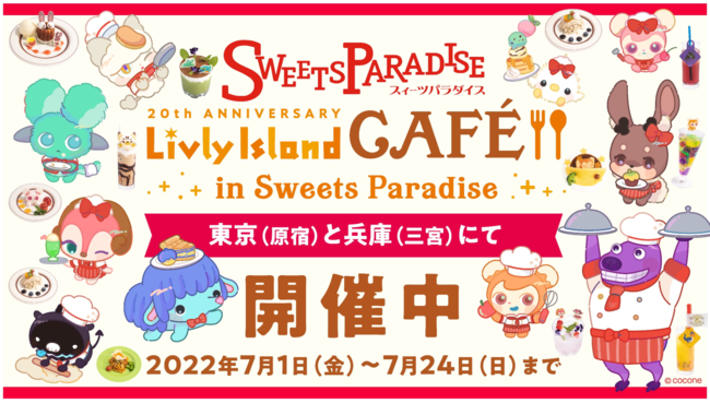 ココネ株式会社(本社:東京都世田谷区、以下「ココネ」)は、Google Play ベスト オブ 2021「エンターテイメント部門」大賞を受賞したアバターアプリ『リヴリーアイランド』において、デザートバイキング専門店「スイーツパラダイス」の原宿店(東京)および三宮店(兵庫)との期間限定コラボカフェを、2022年7月1日(金)より開催します。