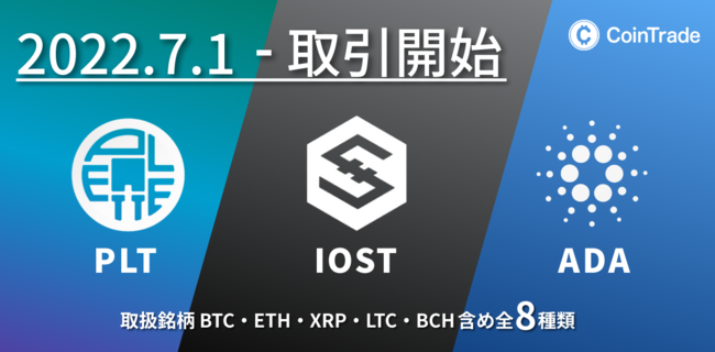 株式会社マーキュリー(本社:東京都世田谷区 代表取締役社長:都木 聡、以下、「当社」)は、当社の提供するサービス「CoinTrade」(コイントレード)において、2022年7月1日より新たに3種類の暗号資産の取り扱いを開始したことをお知らせいたします。これにより「CoinTrade」(コイントレード)では8種類の暗号資産を取り扱うこととなります。