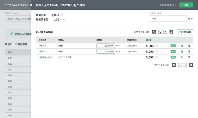 ▼製品別・サービス別のGHG排出量算定画面イメージ(今後変更になる可能性があります)