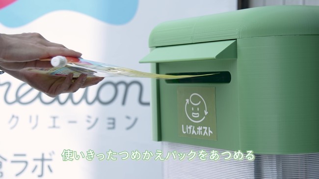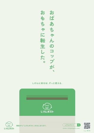 「しげんポスト」は、プラスチックごみを新しいしげん(資源)に変えて、未来の世代に笑顔を届けるポストです。家庭で出た使用済みつめかえパックを「しげんポスト」で回収し、再生プラスチック容器や、住民のアイデアを反映させた地域の役に立つ素敵なモノに作り変えることを狙いとしています。慶應義塾大学が持つ3D製造技術で、鎌倉市内の「リサイクリエーションラボ」にて製造され、鎌倉市内の各所に7月4日より順次設置予定です。
