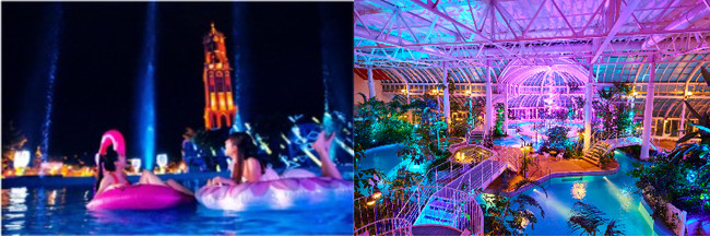 夜は「ガーデンプール」「森のプール」ともに、ラグジュアリーなナイトプールに変身!ガーデンプールでは光の滝とウォーターキャノンのコラボで夜限定の光のショーを楽しめます。イルミネーションとともに写真をたくさん撮ってみては。花火開催日にはプールから花火鑑賞もできますよ✩森のプールは七色の光に包まれ、大人っぽい雰囲気に。幻想的な光の中でゆっくりするのはいかが?