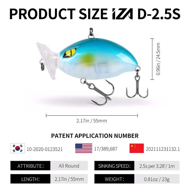 IZAシンクアップベイトは、ベイトの重心を変換する斜めリニアボールシステム(OLB)を備えています。キャスティング時の重心移動による回転防止で飛距離増加。(キャスティング中のスピンからルアーを保護することもできます。)またターゲットを引き付けるためにガラガラ音を生成することができます。