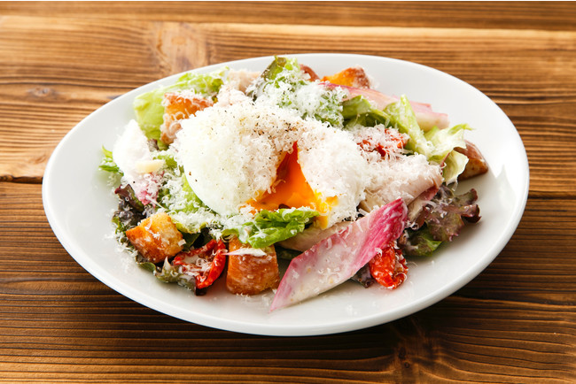 女性におすすめ♪ 【親子シーザーサラダ(鳥ムネ肉・ポーチドエッグ)】659円 (税込725円)