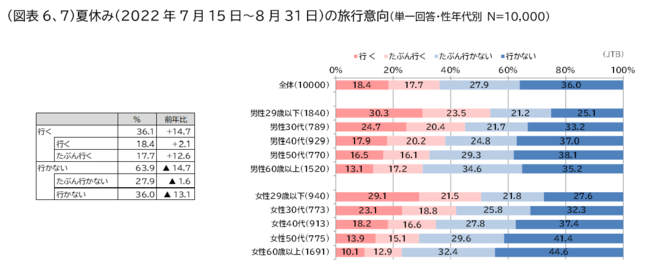2022年夏休み(7月15日~8月31日)の旅行動向