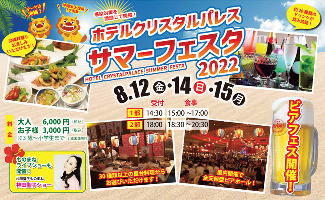 【ホテルクリスタルパレス】沖縄料理とエンタメショーを楽しむホテル夏の風物詩『サマーフェスタ2022』を開催!