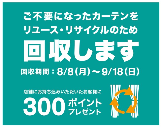※カーテンを回収キャンペーン前にご購入いただき、ご注文いただいた商品を後日店頭へ取りにきていただく際に回収ができるよう、対象期間を7月11日(月)~9月18日(日)とさせていただきます。