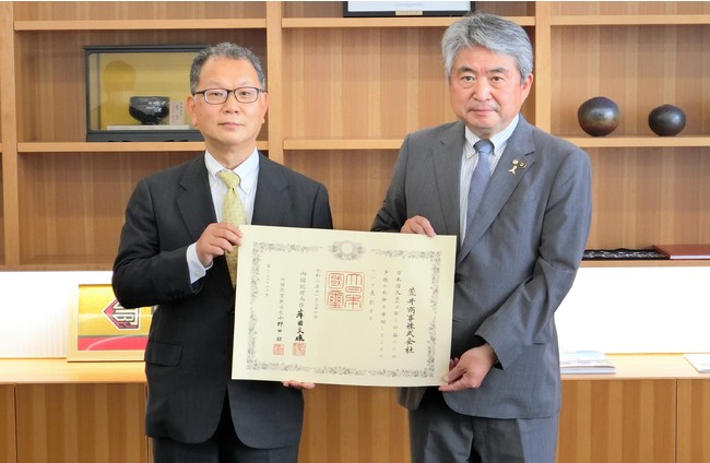 栃木県小山市において、中古車・建機・農機オークションや県南地方卸売市場の運営をしております荒井商事は、2020年12月 、栃木県小山市へ社会貢献活動の一環として企業版ふるさと納税を活用し小山市の小中学校ICT化事業振興に寄付を行いました。今回、その功績が日本国政府に認められ紺綬褒章の受章に至りました。7月4日(月)、小山市役所にて紺綬褒章の伝達式が行われ、浅野小山市長から当社社長の荒井へ紺綬褒章が授与されました。