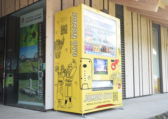 このたび設置された自動販売機は、鹿角市の「大湯環状列石」をポップでユニークなイラストでデザインしており、地元市民やシ観光客に対し広く機運醸成を図ることを狙いとしています。