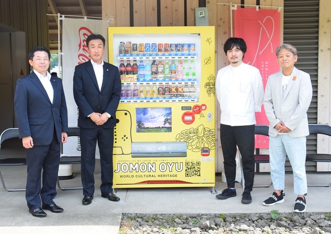 みちのくコカ・コーラボトリング株式会社(本社: 岩手県盛岡市、代表取締役社長: 谷村 広和、以下「当社」)は、株式会社恋する鹿角カンパニー(本社: 秋田県鹿角市、代表取締役: 菅原 久典、以下「恋する鹿角カンパニー」)と協働で世界文化遺産登録「北海道・北東北の縄文遺跡群」PR自動販売機を秋田県鹿角市にある道の駅「おおゆ」に設置し、7月11日(月)に披露会を開催いたしました。