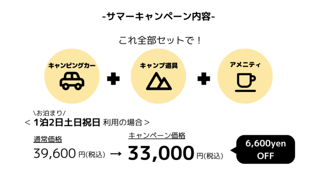 1泊2日&7月~8月 利用の場合、最大¥6,600お得!夏休みの長期利用、キャンプに最適!