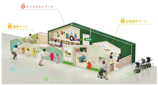 作品を展示する「ディスプレイゾーン」や、自由な遊びを誘発する「プレイゾーン」、成長を記録することができる「フォトゾーン」など5つのゾーンを備え、子どもたちが遊び・学び・成長することができる空間となっています。