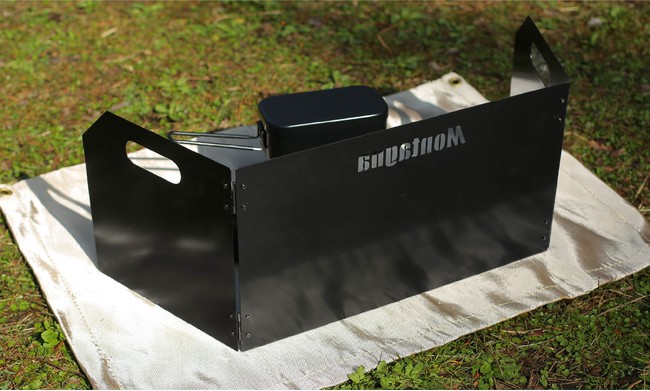 特徴:最長約93cmまでワイドに広がって風を防ぐウィンドスクリーン。鉄製のパネルがコンロをしっかりと囲んで、キャンプ調理や焚き火の燃焼を安定させます。折りたたんでフラットに収納可能、持ち運びに便利な収納袋付きで携帯性が抜群。
