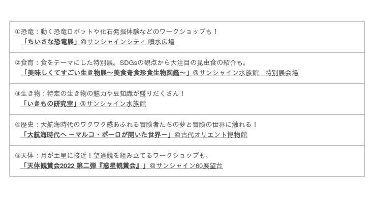 小中学生・保護者必見!夏休みの自由研究に悩んだら…!?自由研究におススメ・サンシャインシティのイベント5選!!