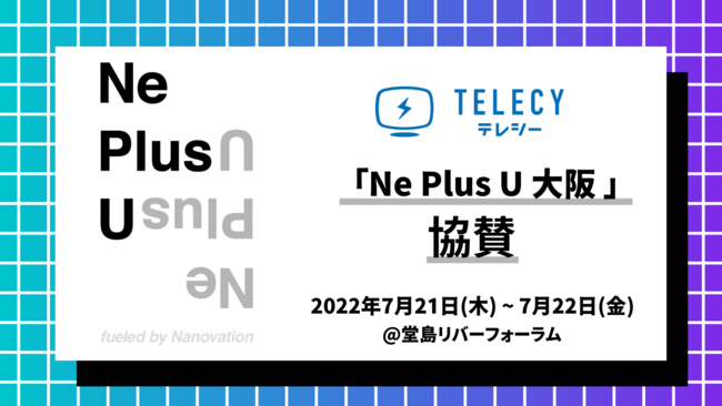 株式会社CARTA HOLDINGSのグループ会社で、株式会社電通(本社:東京都港区、代表取締役社長執行役員:榑谷 典洋)と共同で運用型テレビCMプラットフォーム「テレシー」(https://telecy.tv/)を運営する株式会社テレシー(東京都渋谷区、代表取締役CEO:土井 健)は、2022年7月21日~22日に堂島リバーフォーラムにて開催される、株式会社ナノベーション(本社:沖縄県読谷村喜名2346-11 読谷村地域振興センター、代表取締役:中野博文) 主催の「Ne Plus U 大阪」( https://neplus-u.com/ )に協賛いたします。