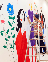 1979年生まれ。福岡在住のイラストレーター。カラフルな色彩とちからの抜けた線が特徴。人々の日常の生活の中に少しのユーモアと非日常的な要素を足しながら、遊び心にあふれた楽しげな世界感を描く。広告、雑誌、パッケージデザイン、アパレルなど、幅広く活躍しているほか、壁画などの大型作品も多く手がけている。