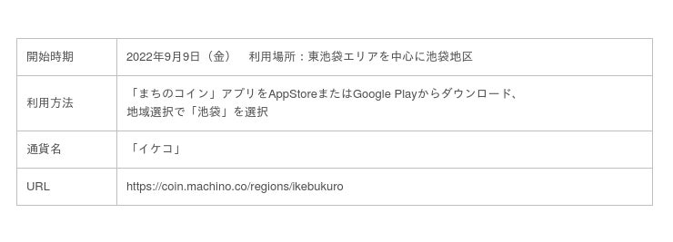 株式会社カヤック(本社:神奈川県鎌倉市、代表取締役CEO:柳澤大輔)が開発した、コミュニティ通貨(電子地域通貨)サービス「まちのコイン」が、株式会社GENDA GiGO Entertainment(本社:東京都大田区 代表取締役社長:上野 聖)運営の元、池袋地域に2022年9月9日(金)から導入されることをお知らせいたします。池袋の街中のさまざまなカルチャー体験ができるスポットで利用可能予定です。なお、スポットは現在も受付中です。「まちのコイン(通貨名:イケコ)」の導入により池袋の街中で人々が回遊することを促進し、池袋の多様な文化をもっと多くの人に体験してもらうことを目指します。