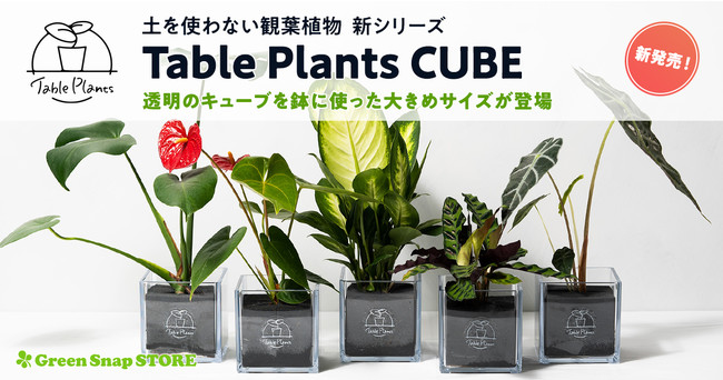 累計販売数9,000個!土を使わない観葉植物Table Plantsシリーズに、四角いクリアポットの「Table Plants CUBE」が新登場