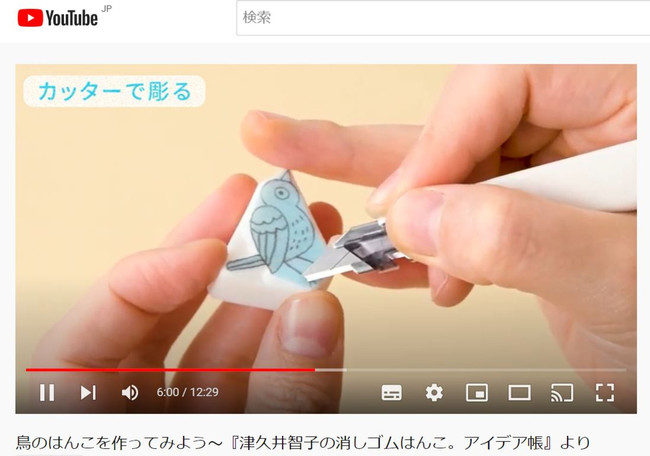 【YouTube】鳥のはんこを作ってみよう~『津久井智子の消しゴムはんこ。アイデア帳』より